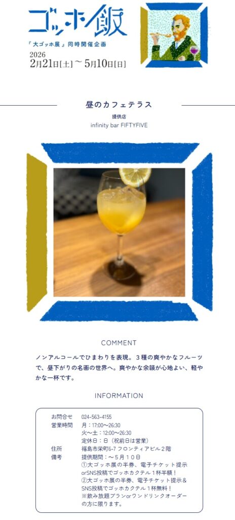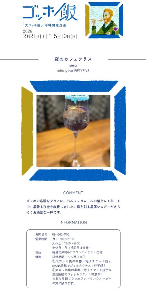 福島市ホームページにて紹介中!!夜のカフェテラス | ゴッホ飯 | 『大ゴッホ展』同時開催企画